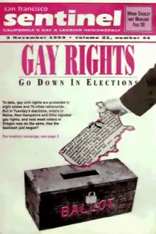 - ↑ "Gay Newspaper Closes After 21-Year Run". San Francisco Chronicle. September 16, 1995. Retrieved October 7, 2011.