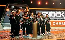 In the North America playoffs bracket, the San Francisco Shock emerged victorious against the Washington Justice,[40] the Atlanta Reign,[41] and the Philadelphia Fusion to advance to the Grand Finals bracket.[42] They faced the Seoul Dynasty in the first round, where they took a 2–0 lead but allowed the Dynasty to tie the series. However, the Shock prevailed in the final map to advance.[43] In the upper finals, they faced the Shanghai Dragons, again taking a 2–0 lead before the Dragons equalized. The Shock secured their place in the Grand Finals match by winning the final map.[44] On October 10, they faced the Seoul Dynasty in the Grand Finals, and the Shock claimed a 4–2 victory to win their second consecutive Overwatch League championship. Striker was named the Grand Finals MVP.[45]