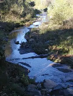 San Pedro Creek (Spanish for St. Peter) is a perennial stream in the City of Pacifica, San Mateo County, California in the San Francisco Bay Area whose tributaries originate on Sweeney Ridge in the Golden Gate National Recreation Area and Montara Mountain in the Santa Cruz Mountains.The creek mainstem flows 2.5 miles (4.0 km) through the San Pedro Valley to its mouth near Shelter Cove of the Pacific Ocean[2] The stream is notable as the 1769 campsite for Gaspar de Portolà before he ascended Sweeney Ridge and discovered San Francisco Bay.