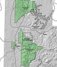 The San Pedro Parks Wilderness is located in southern Rio Arriba County in northern New Mexico and part of the Santa Fe National Forest. It is 41,132 acres (16,646 ha) (64 sq miles) in size. Elevations range from 8,300 feet (2,500 m) in the southwestern corner to 10,592 feet (3,228 m) at San Pedro Peaks near the center of the Wilderness.[1] The Wilderness's average elevation is over 10,000 ft.[2] Conifer forests, interspaced with grassy meadows, called "parks," characterize the wilderness. San Pedro Parks Wilderness is primarily visited for hiking, camping, hunting, and fishing. The Continental Divide Trail passes through the Wilderness.