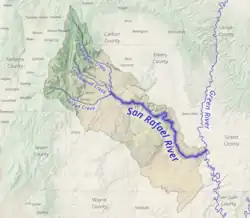 The San Rafael River is a tributary of the Green River, approximately 90 miles (140 km) long, in east central Utah, United States.[1] The river flows across a sparsely populated arid region of the Colorado Plateau, and is known for the isolated, scenic gorge through which it flows.