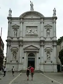 The Church of Saint Roch (Italian: Chiesa di San Rocco) is a Roman Catholic church dedicated to Saint Roch in Venice, northern Italy. It was built between 1489 and 1508 by Bartolomeo Bon the Younger, but was substantially altered in 1725. The façade dates from 1765 to 1771,[1] and was designed by Bernardino Maccarucci. The church is one of the Plague-churches built in Venice.[2]