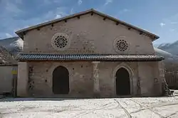 The Church of San Salvatore was built in the medieval period in a clearing along the via Nursina, a road which led from Spoleto to Norcia. It replaced an ancient Roman temple, which had been adapted as a church dedicated to Saint Mary upon the advent of Christianity. Some Roman remains were found in the church during restoration works in 1969.[1] The church was first mentioned in 1115, when it was documented as a dependency of the nearby Benedictine Abbey of Sant'Eutizio, known as Plebs S. Marie de Cample cum earum pertinentiis et decimis et aliis pertinentiis or Plebania S. M. de Camplo. The Benedictine monks who administered the church were responsible for the decoration of the building using tithes raised from the faithful.