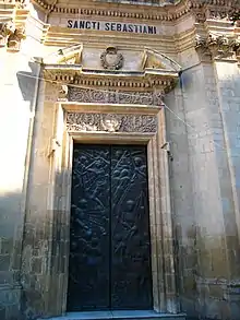 San Sebastiano is a Baroque-style Roman Catholic church located in the town of Melilli, province of Siracusa, region of Sicily, Italy. It is located along a hill above the town, along Via Italia, which has a scenic park and overlook from where one can look towards the industrial refineries along the Mediterranean coast near Augusta.