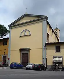A church and adjacent convent were erected between 1254 and 1278 by monk of the Umiliati order, likely to house the relics of Saint Torpe from a nearby decrepit church of San Rossore a Tombolo. This order was suppressed in 1571 by Pope Pius V, and it passed in 1584 to monks of the Franciscan order of Minims of San Francesco of Paola. The Franciscans were dedicated to redecoration of the church and employed the artists Alfonso Robertelli, Bartolomeo di Domenico (altar of San Francesco da Paola), Guerruccio Guerrucci (altar of the Madonna), and Baldassarri di Pasquino Tacci(canvas depicting the Madonna).