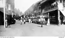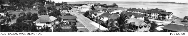 The prosperity of Sandakan as the capital of North Borneo was however ended when the Japanese occupied the town on 19 January 1942.[4][27] During their occupation, the Japanese restored the town's previous name, Elopura and established a prisoner of war camp to hold their captive enemies. Allied planes started to raid Sandakan in September 1944. As the Japanese feared further retaliation from the Allied forces, they began to move all prisoners and forced them to march to Ranau.[28] Thousands of British and Australian soldiers lost their lives during this forced march in addition to Javanese labourers from the Dutch East Indies.[29][30][31] Only six Australian soldiers survived from this camp, all after escaping. Sandakan was completely destroyed both by bombing from Allied forces and by the Japanese occupation.[6][32][33]