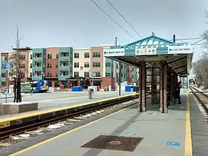 ![]() Sandy Civic Center station platform with bus stops and transit-oriented development in the distance | |||||||||||||