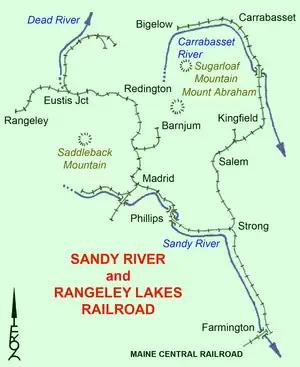 - ↑ "History: Today's SR&RL RR". Sandy River and Rangeley Lakes Railroad. Retrieved April 5, 2017.