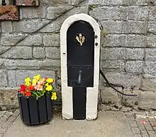 New cast iron railings were added to the forestair in 1857[1] and a coat of arms of the Crichton family, the former owners of Sanquhar Castle, was placed on the front of the building in the late 1950s.[3] The town hall continued to serve as the meeting place of the burgh council for much of the 20th century but ceased to be the local seat of government when the enlarged Nithsdale District Council was formed in 1975.[7][8] The building was converted for use as a local history museum in 1989.[3] Artefacts assembled in the museum collection included items associated with the local knitting trade as well as the local mining industry.[9][10]