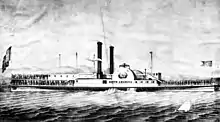 - ↑ At this time in the United States, a sidewheel steamer's beam was usually measured across the hull only, rather than across the hull, paddlewheels and guards.[4]