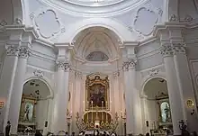 The entrance contains a scenic staircase, designed, as well as the dome, by Guglielmelli.[2] It leads to a striking convex facade. The interior has stucco decoration and maiolica tiles. The altars are in polychrome marble. The balustrade of the altar has diverse coats of arms of noble families that patronized construction.