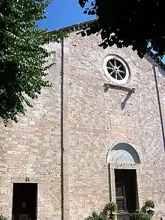 The current structure dates from the 11th-12th centuries, although it was built on a pre-existing Palaeo-Christian church; the latter had been in turn erected above a Roman edifice, the so-called "Propertius' Domus" or a temple dedicated to Apollo[1] or, according to the tradition, to Janus.[2] The church served as the city's cathedral until 1036, when the title was moved to the current Cathedral, the church of San Rufino.