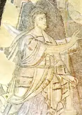 Aside from some modern statues, artworks include the late 8th- to early 9th-century frescoes, of which only fragments survive in the two side apses: the Annunciation of Zacharias, Mutism of Zacharias, the Annunciation and the Visitation. They were executed by artists linked to the school of illuminators from Benevento.[2]