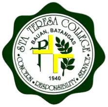 Sta. Teresa College (formerly St. Theresa's Academy and Colegio de Santa Teresa de Jesus) often abbreviated as "STC" is a Catholic education institution founded in 1920 and established by the Franciscan Sisters in 1940. Its main campus is located at Kapitan Ponso Street, Bauan, Batangas, Philippines.[1] To date, STC is one of the oldest Catholic Schools within the jurisdiction of the Archdiocese of Lipa.
