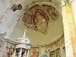 The pastoral visit in 1569 was led by Leonetto Chiavone. It resulted in a statement saying that the altar was placed under a painted and ornamented vault. In the pastoral visit of 1581, the apse is described as full of frescoes, but with corroded images due to the antiquity. Descriptions of these frescoes are missing and it is impossible to define which of the visible frescoes are original ones. During post-1939 restorations, some antique frescoes were uncovered that were obscured during restoration work in the 16th century.