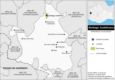 - ↑ "SANTIAGO Juxtlahuaca". Enciclopedia de los Municipios de México: ESTADO DE OAXACA. Archived from the original on 16 June 2011. Retrieved 6 June 2010.