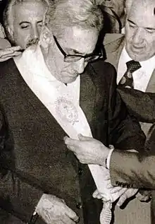 Santiago Felipe Llaver (August 12, 1916 in Mendoza – July 14, 2002) was an Argentine politician of the Radical Civic Union.[1] Born in San Martin, he was elected governor of the Mendoza Province in the first elections after the National Reorganization Process in 1983. His term ended in 1987 and José Bordón succeeded him as governor.