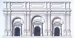 Project by Joaquín Toesca for the facade of the cathedral. Colored plate, litography of 1780.