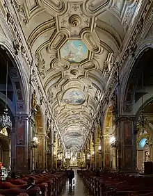 The main temple is made up of a plant with three naves. Its width is 45 meters and its length, from the façade to the doors facing Bandera street, is about 100 meters. This gives an area of about 4500 square meters.