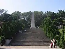 To praise the heroic history of the heroes in Sanyuanli, in October 1950, Guangzhou Government set up a Sanyuanli Revolutionary Martyrs Monument [1] in a hillock of Ximen building (西门楼). Around the monument, there is the Sanyuanli Incident Memorial Park. The park covers an area of 7920 square kilometers, with a solemn and serene architectural style.