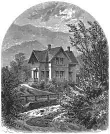 In 1853, she made her first visit to Europe,[1] on an assignment for The New York Times, having the distinction of being the first woman reporter on the Times payroll.[14] She spent a little over a year abroad, which, in the dedication to her daughter of one of her juvenile books, she calls "the golden year of her life".[15] Her accounts of her travels were well-received contributions to literature of the day. The correspondence was collected immediately after her return, and published under the title of Haps and Mishaps of a Tour in Europe.[16] Upon her return, she also made frequent excursions into California, writing vivid descriptions of the land.[5] In the fall of 1855, she published Merrie England, the first of a series of books of foreign travel for children.[7] Nathaniel Hawthorne criticized her travel letters, calling her an "ink-stained woman" and claiming he could do as well. Despite this, Lippincott seems to have gotten along amiably with Hawthorne's family. She dedicated her children's book Recollections of My Childhood, and Other Stories to his children Julian and Una Hawthorne.