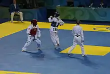 ![]() 2008 Summer Olympics Taekwondo - Sara Khoshjamal Fekri (IRN, blue) v. Ghizlane Toudali. (TUN, red) | |||||||||||||||