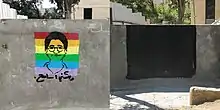 Street murals and graffiti art commemorating Hegazi in the Jordanian capital Amman were speedily painted over after a social media uproar.[60] A journalist decried the act in a tweet saying: "...the Amman Municipality worked until the late night hours on obliterating drawings by some aberrants [شواذ, an Arabic pejorative for homosexuals] in some areas of Amman. I am surprised that this category [homosexuals] exists even though it is foreign to our customs and traditions..."[61] A spokesperson for the Greater Amman Municipality said: "Amman Mayor Yusef Al-Shawarbeh issued an order to all district managers to remove the murals."[61]
