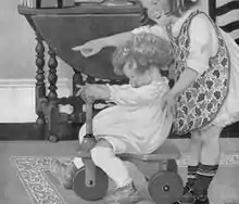 Weber illustrated advertisements for Rit Dyes, Scranton Lace Company, Wamsutta Mills and H-O Oats.[11] Weber collaborated with Herbert, her husband, on The Musical Tree. Herbert wrote the poems and music and Sara created the illustrations for the children's book.[2] By 1921, she had created a series of illustrations called Kiddie Kars, which at that time were owned by H. C. White Company.[12] Her full-page color illustrations were published in The Kiddie-Kar Book, in which the verses were written by Richard J. Walsh.[13]