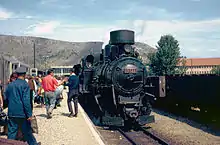 The line was opened in 1891 in the Bosnian gauge of 760mm. With the construction of the railway, the port of Metković grew into one of the most important ports in Dalmatia, and the first port in Dalmatia to receive a railway line.[11] The section from Mostar to Konjic was built through the canyon of the Neretva river, and in some places, it had features of a mountain railway. A lot of walls, tunnels and cuttings were built, and because of the frequent crossing from one side of the river to the other, there were also a lot of bridges, so that section was much more expensive than the section built before. From Konjic to Sarajevo, the builders had to overcome the ascent of the Ivan Mountains with a relative height of 600 metres (2,000 ft). For this purpose, a third rail (the so-called cogwheel of engineer Roman Abt) was laid on two sections: Pazarić - Tarčin (3,722 km, incline 35 per thousand) and Podorašac - Raštelica (15,222 km, gradient 60 per thousand).[12] With the construction of the railway, the port in Metković has grown into one of the most important ports in Dalmatia, and the first port in Dalmatia to receive a railway.[13] A tunnel with a length of 648 m was also cut through the Ivan mountains. Special steam locomotives of the 97 series performed the pulling of trains on these two sections.[10]
