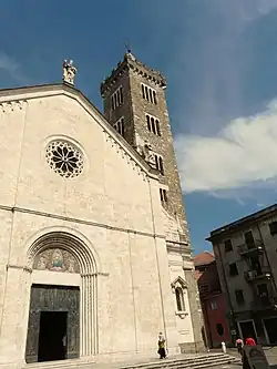 Sarzana Cathedral (Italian: Concattedrale di Santa Maria Assunta di Sarzana) in Sarzana, Liguria, Italy, is a co-cathedral of the Diocese of La Spezia-Sarzana-Brugnato. It is dedicated to the Assumption of the Virgin Mary. The building is a mixture of the Romanesque and Gothic styles, reflecting the length of the period of its construction, from the early 13th to the late 15th century.