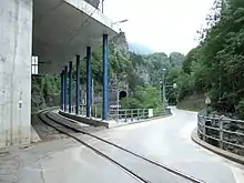 The RhB has closed Sassal halt (that is, passengers can no longer embark/alight there, though trains continue to run through on the line) due to the danger of falling rocks, low passenger numbers, and problems getting on and off trains at this location. This location has suffered from notable landslides in recent times - the mountainside to the rear of the station is unstable - with the railway line and road sometimes obstructed by rockfall.