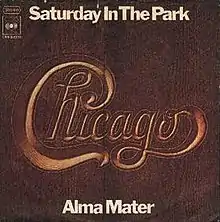 "Saturday in the Park" is a song written by Robert Lamm and recorded by the group Chicago for their 1972 album Chicago V. It was very successful upon release, reaching No.3 on the Billboard Hot 100,[5] and became the band's highest-charting single at the time, helping lift the album to No.1.[6] Billboard ranked it as the No. 76 song for 1972. The single was certified Gold by the RIAA, selling over 1,000,000 units in the U.S. alone.[7]