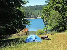 Gulf Islands National Park Reserve offers 7 walk-in (or kayak-in) backcountry campsites at Narvaez Bay. The trailhead to Narvaez Bay is located at the parking lot at the end of Narvaez Bay Road. There is also a bike rack available for cyclists to lock up their bikes. From the parking lot, there is a 1 km (0.6 mi) trail down to two beaches, Narvaez Bay and Echo Bay, and a side trail off to Monarch Head, which looks out to Boundary Pass and the San Juan Islands.[17] There is no potable water at Narvaez Bay, and no campfires are permitted, regardless of season.[18] Two private campgrounds offer year-round camping: Neither permits fires, however both offer access to potable water.