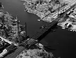 The Saugatuck River Railroad Bridge, also known as Saugatuck River Bridge, is a railroad bridge carrying trackage of Metro-North Railroad's New Haven Line over the Saugatuck River in Westport, Connecticut. It is one of eight moveable bridges on the Amtrak Northeast Corridor route through Connecticut. It was built in 1905 for the New York, New Haven and Hartford Railroad. The bridge is a single leaf Scherzer rolling lift bascule bridge.[2]