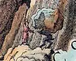 The legend is related by Johann Jakob Scheuchzer (1716). According to Scheuchzer, he was told a local legend according to which the people of Uri recruited the Devil for the difficult task of building the bridge. The Devil requested to receive the first thing to pass the bridge in exchange for his help. To trick the Devil, who expected to receive the soul of the first man to pass the bridge, the people of Uri sent across a dog by throwing a piece of bread, and the dog was promptly torn to pieces by the Devil. Enraged at having been tricked the Devil went to fetch a large rock to smash the bridge, but, carrying the rock back to the bridge, he came across a holy man who "scolded him" (der ihn bescholten) and forced him to drop the rock, which could still be seen on the path below Göschenen.[9] A modern retelling was published by Meinrad Lienert, Schweizer Sagen und Heldengeschichten (1915). According to Lienert's version, a goat was sent across the bridge instead of a dog, and instead of the holy man, the Devil, when he was taking a break exhausted from carrying the rock, came across an old woman who marked the rock with a cross, forcing the Devil to abandon it and flee.