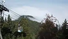 From Freiburg (valley station Horben), the Schauinsland can be reached by Germany's longest cable car. The so-called Schauinslandbahn ascends a height of 746 metres (2,448 feet) and has a length of 3600 metres (2¼ miles). The 37 cabins can transport up to 700 people per hour, which is about 240,000 passengers per year. The Schauinslandbahn came into operation in 1930 as the world's first cable railway according to the circulation principle.
