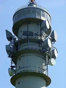 Schlemmin TV Tower is a TV tower of reinforced concrete southwest of Schlemmin, a village in the municipality of Bernitt in northeastern Germany. The tower was built in 1967. Until 1992 it was equipped with an observation deck and was 64 metres (210 ft) tall. It quickly became a well-known tourist attraction, and so in 1969 an inn was also built at its foot. In 1992 the tower got a large modernization: its culprit was replaced by a larger new culpit, and it got a new pinnacle, so its height grew to 94 metres (308 ft). It was closed to the public after these modernization measures; the inn was also demolished.