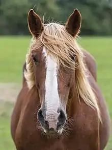 The Schleswig Coldblood (German: Schleswiger Kaltblut, Danish: Slesvigsk Koldblod) is a breed of medium-sized draught horse originally from the historic Schleswig region of the Jutland Peninsula, which today is divided between modern Denmark and Germany, and from which its name derives. It is found primarily in the northern German state of Schleswig-Holstein, and also, in smaller numbers, in Lower Saxony. It shares the origins, ancestry and much of the history of the Danish Jutland breed, and shows some similarity to the British Suffolk Punch. It is used in agriculture and forestry, and to draw coaches and wagons.