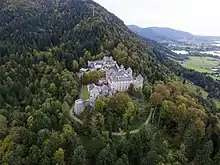 Schloss Ringberg (Ringberg Castle) is located in the Bavarian Alps, 50 km south of Munich, on a foothill overlooking the Tegernsee. Not open to the general public, it is a property of the Max Planck Society and used for conferences.