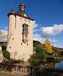 Today the core building of the estate is a substantial tower house, as a water castle surrounded by a square pond. Therefore, the house is only reachable by bridge. This keep can be traced to the first third of the 14th century and the family of Greiffenclau, the heirs of the Lords of Winkel. The octagon stage tower, flanking the donjon, was erected in 1471; the bay window was added in 1620. Above the doorway the coat of arms of the Greiffenclau family is to be seen.