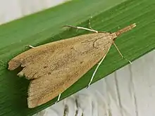 Schoenobius[2] is a genus of moths of the family Crambidae and typical of the subfamily Schoenobiinae. Species are found mostly in Europe.[3]