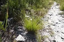 Schoenus bolusii is a species in family Cyperaceae, tribe Schoeneae.[1] Other notable genera in tribe Schoeneae include Lepidosperma, Oreobolus, Costularia, Tetraria and Gahnia.[1][3][4] The most closely related species to S. bolusii are other southern African Schoenus species, specifically, species in the S. cuspidatus and allies group.[1]