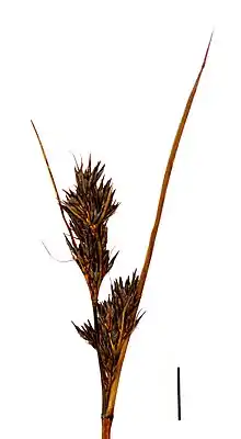 Schoenus loreus is a species in family Cyperaceae, tribe Schoeneae.[3] Other notable genera in tribe Schoeneae include Costularia, Lepidosperma, Oreobolus, Tetraria and Gahnia.[3][4][5] Schoenus loreus is most closely related to other southern African Schoenus species, specifically, species in the S. cuspidatus and allies group.[3][1]