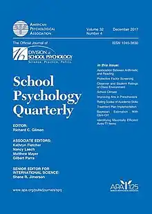 School Psychology, formerly known as School Psychology Quarterly, is a peer-reviewed academic journal published by the American Psychological Association on behalf of APA Division 16. The journal was established in 1986 and covers topics such as the "psychology of education and services for children in school settings."[1] The current editor-in-chief is Richard C. Gilman of Cincinnati Children's Hospital Medical Center.