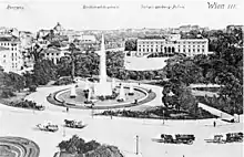 Franz Joseph I witnessed the commemoration ceremony of the First Vienna Mountain Spring Pipeline, on 23 October 1873 in front of the Palais Schwarzenberg (in an area that was not yet considered part of Schwarzenberg Platz).