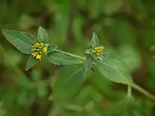 It includes annuals and procumbent perennials which occur primarily in Mexico and Central America, with one species extending as far north as the state of Texas in the United States and another species widely distributed across the West Indies, South America, Africa, and Asia.[7] The genus is distinguished morphologically by the pales, which are modified to completely and tightly enclose the mature cypsela (achene) and often have a tuberculate surface. Some species of Aldama have a somewhat similar modification of the pales but in those the pale surface is irregularly wrinkled and pitted rather than tuberculate. Sclerocarpus is a member of the sunflower subtribe, Helianthinae, and is placed by molecular data as a relatively basal member of the group.[8]