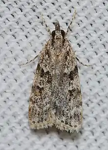 The length of the forewings is 6–8 mm. The ground colour of the adults varies from uniform brownish grey to pale grey or even strongly marked with black transverse patches. Adults are on wing from June to August.[3]