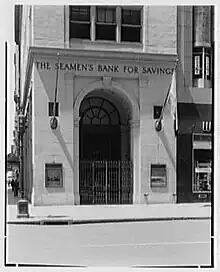 The bank moved its headquarters several times, but always remained in the financial district of New York City. In 1926, the bank built a new building at 74 Wall Street, designed by architect Marc Eidlitz. The site is believed to have been the location of New York City's slave market in the 18th century. The bank building features an archway adorned with maritime-themed ornamentation, including ships and mermaids.[3] The building is now a National Register-listed landmark.[4]