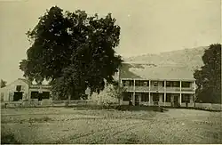 Charles Brown, a former whaler from San Francisco purchased a portion of the Rancho Cañada de Raymundo Mexican-era land grant of John Coppinger[2] and settled there with his wife. The newly acquired property was named the Mountain Home Ranch and previously had an adobe house built in 1839 (still located at the intersection of present day Portola Road and La Honda Road) and a sawmill.[2][3][4] In 1852 John Smith joined Charles Brown at the Searsville site, and the next year August Eikerenkotter arrived and started a store and hotel.[5] By 1854 John Howell Sears moved to the site, for whom the town was named based on his postal contract.[1][6]