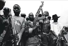 ![]() Unidentified Liberian rebel fighters, including child soldiers, during the Second Liberian Civil War | |||||||